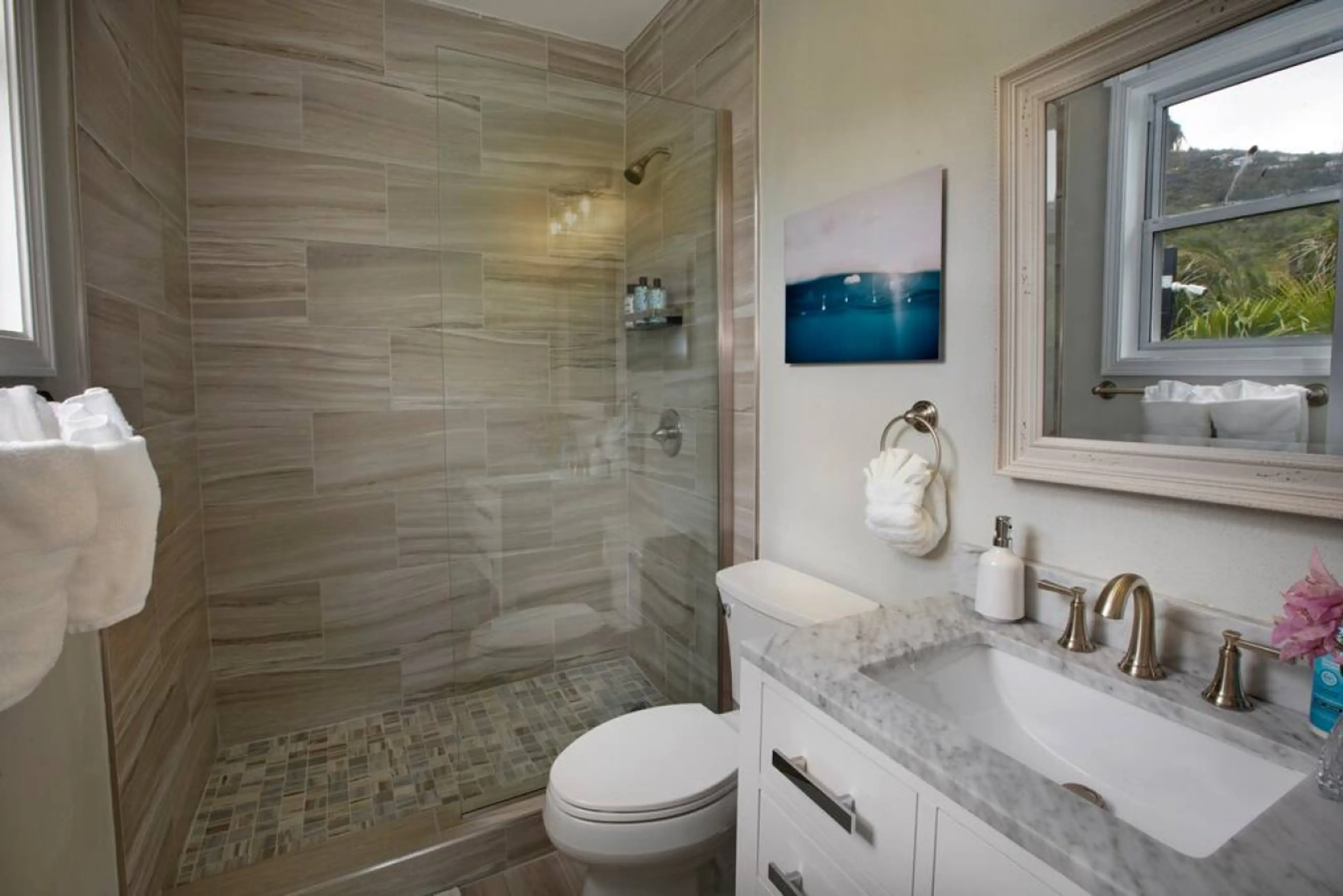 Negative: You MUST have a car when staying. Cabs are non-existent (they simply will not service this area and come up with a lame excuse - 'we are booked this weekend'). You are on your own. No grocery store. The only other alternative is a private car service - ranging from $150-200 for a round trip. There is a small shack/restaurant next door which has simple lunch and dinner (no breakfast). And an even smaller 'local' shack next to it - serving food truck quality food. And that's it - nothing else is around and impossible to walk anywhere. So without a car, be ready to be locked in.